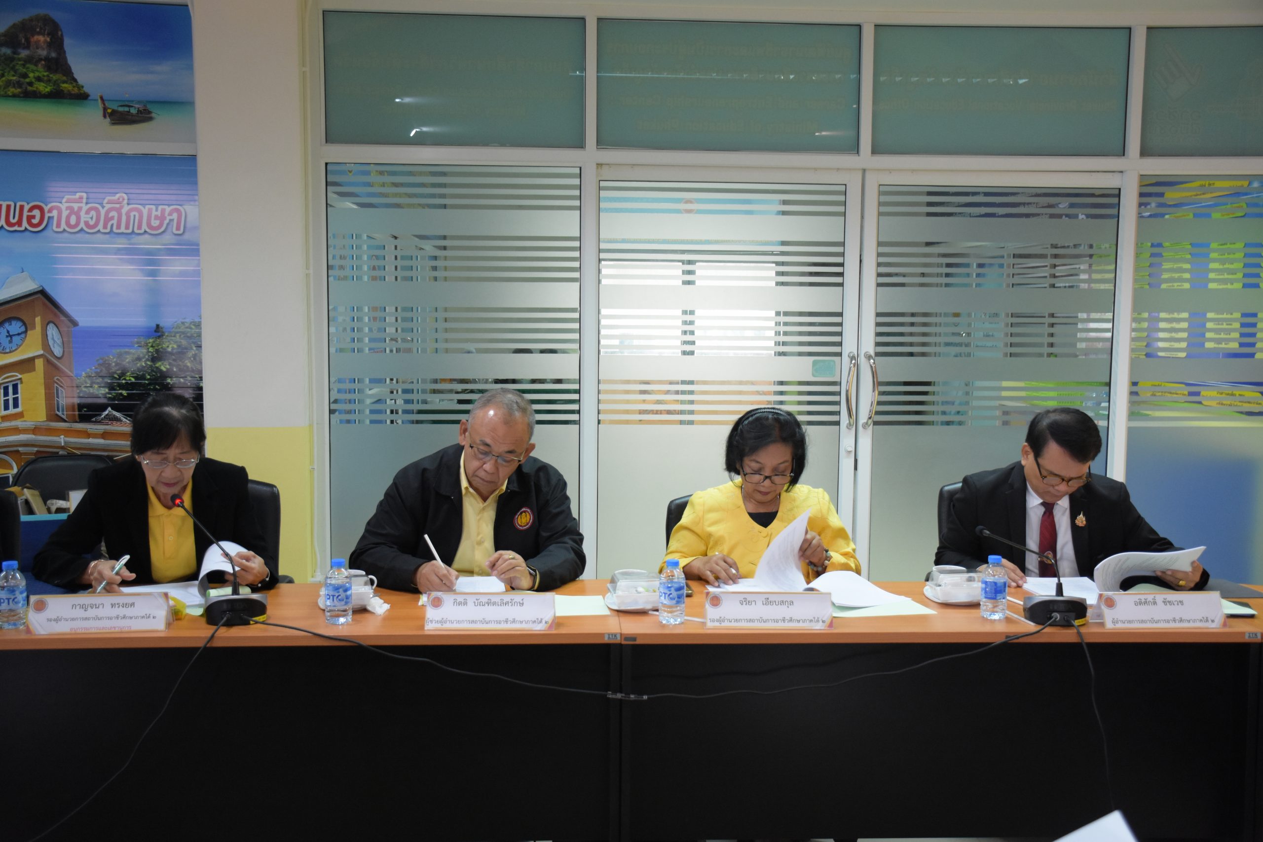 ประชุมคณะอนุกรรมการด้านกฎหมาย ระเบียบ ข้อบังคับ และประกาศสถาบันการอาชีวศึกษาภาคใต้ 2 ครั้งที่ 3/2568 วันที่ 18 สิงหาคม 2568 สถาบันการอาชีวศึกษาภาคใต้ 2 จัดประชุมคณะอนุกรรมการด้านกฎหมาย ระเบียบ ข้อบังคับ และประกาศสถาบันการอาชีวศึกษาภาคใต้ 2 ครั้งที่ 2/2568 ณ ห้องประชุม สำนักงานอาชีวศึกษาจังหวัดภูเก็ต ชั้น 2 วิทยาลัย เทคนิคภูเก็ต โดยมีวาระเสนอดังนี้ พิจารณา ร่าง ประกาศ สถาบันการอาชีวศึกษาภาคใต้ 2 เรื่อง แนวปฏิบัติการประกันคุณภาพการศึกษาภายใน ระดับหลักสูตร ระดับปริญญาตรีสายเทคโนโลยีหรือสายปฏิบัติการ พ.ศ. .... ร่าง ข้อบังคับ สถาบันการอาชีวศึกษาภาคใต้ 2 ว่าด้วยตรา สัญลักษณ์ และเครื่องหมายของสถาบันการอาชีวศึกษาภาคใต้ 2 พ.ศ. .... ร่าง ข้อบังคับ สถาบันการอาชีวศึกษาภาคใต้ 2 ว่าด้วย เครื่องแบบ เครื่องหมายและเครื่องแต่งกายนักศึกษา ระดับปริญญาตรี พ.ศ. .... ร่าง ข้อบังคับ สถาบันการอาชีวศึกษาภาคใต้ 2 ว่าด้วย การจ่ายเงินรายได้ เป็นค่าสอนพิเศษและค่าตอบแทน ระดับปริญญาตรีสายเทคโนโลยีหรือสายปฏิบัติการ พ.ศ. .... และร่าง ระเบียบ สถาบันการอาชีวศึกษาภาคใต้ 2 ว่าด้วย การจ่ายเงินรายได้ เป็นค่าสอนพิเศษ และค่าตอบแทน ระดับปริญญาตรี สายเทคโนโลยีหรือสายปฏิบัติการ พ.ศ. ....